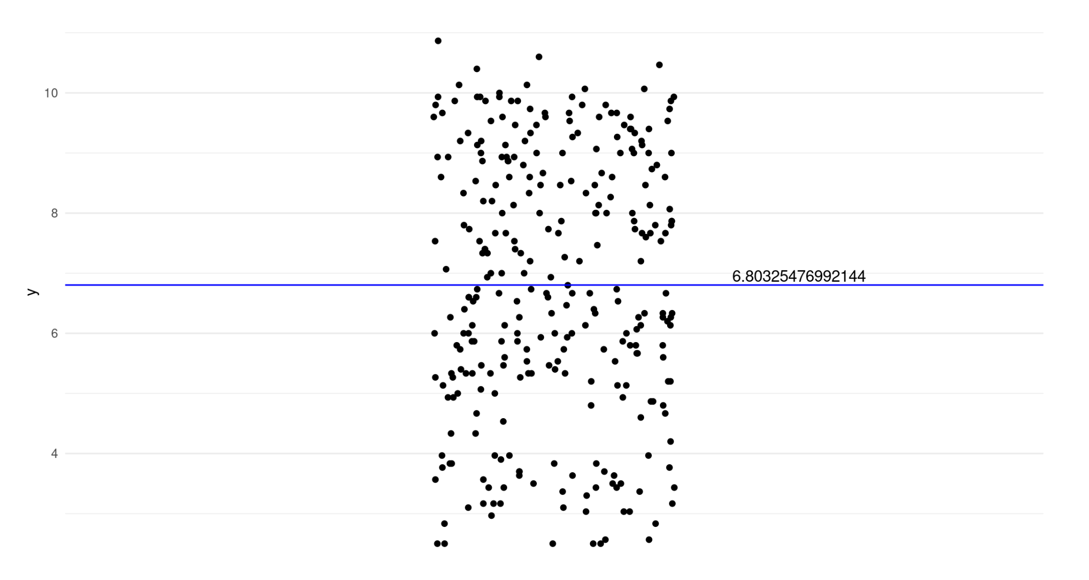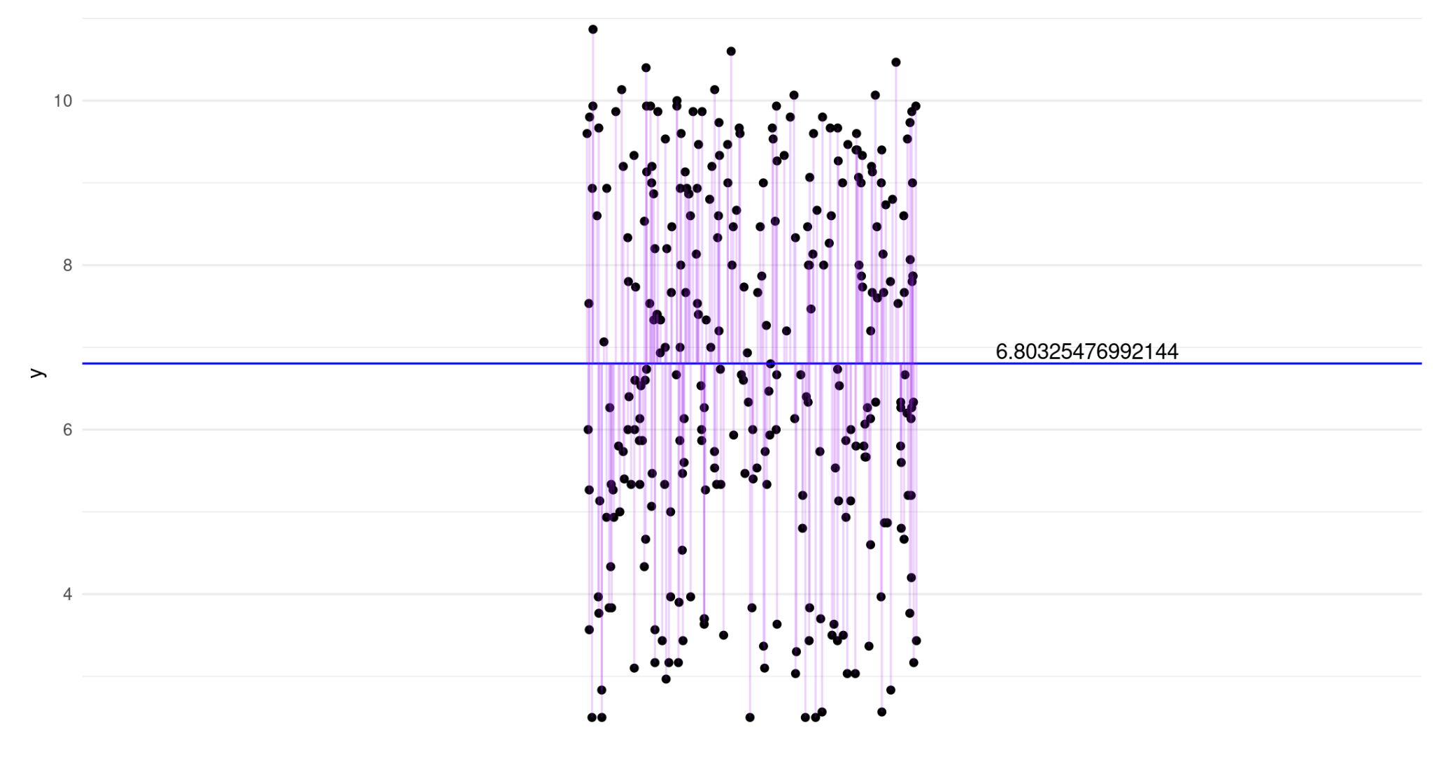 We estimate a linear regression with no predictors and plot the intercept (null model).