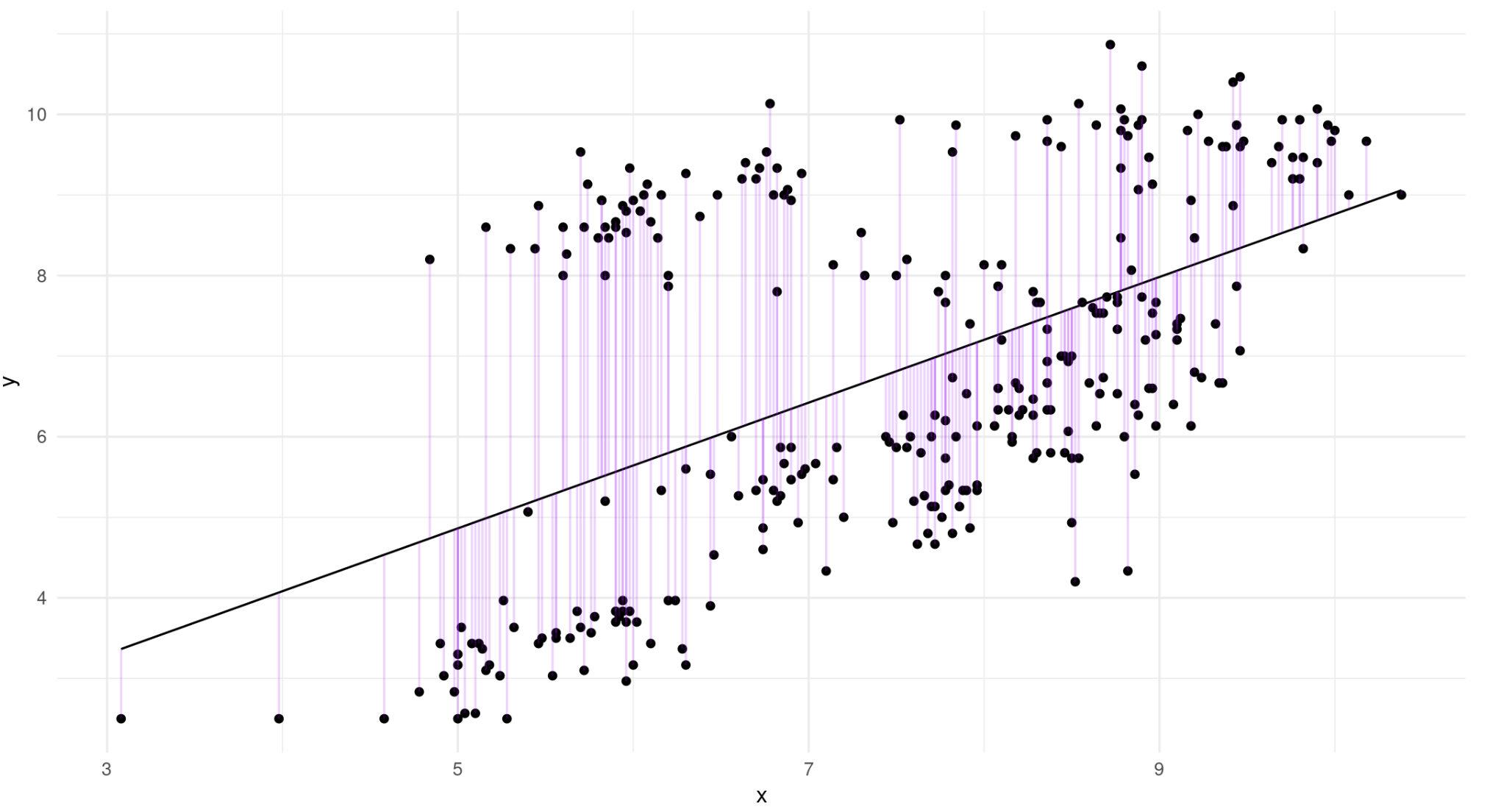 Purple lines indicate the error term for each observation.