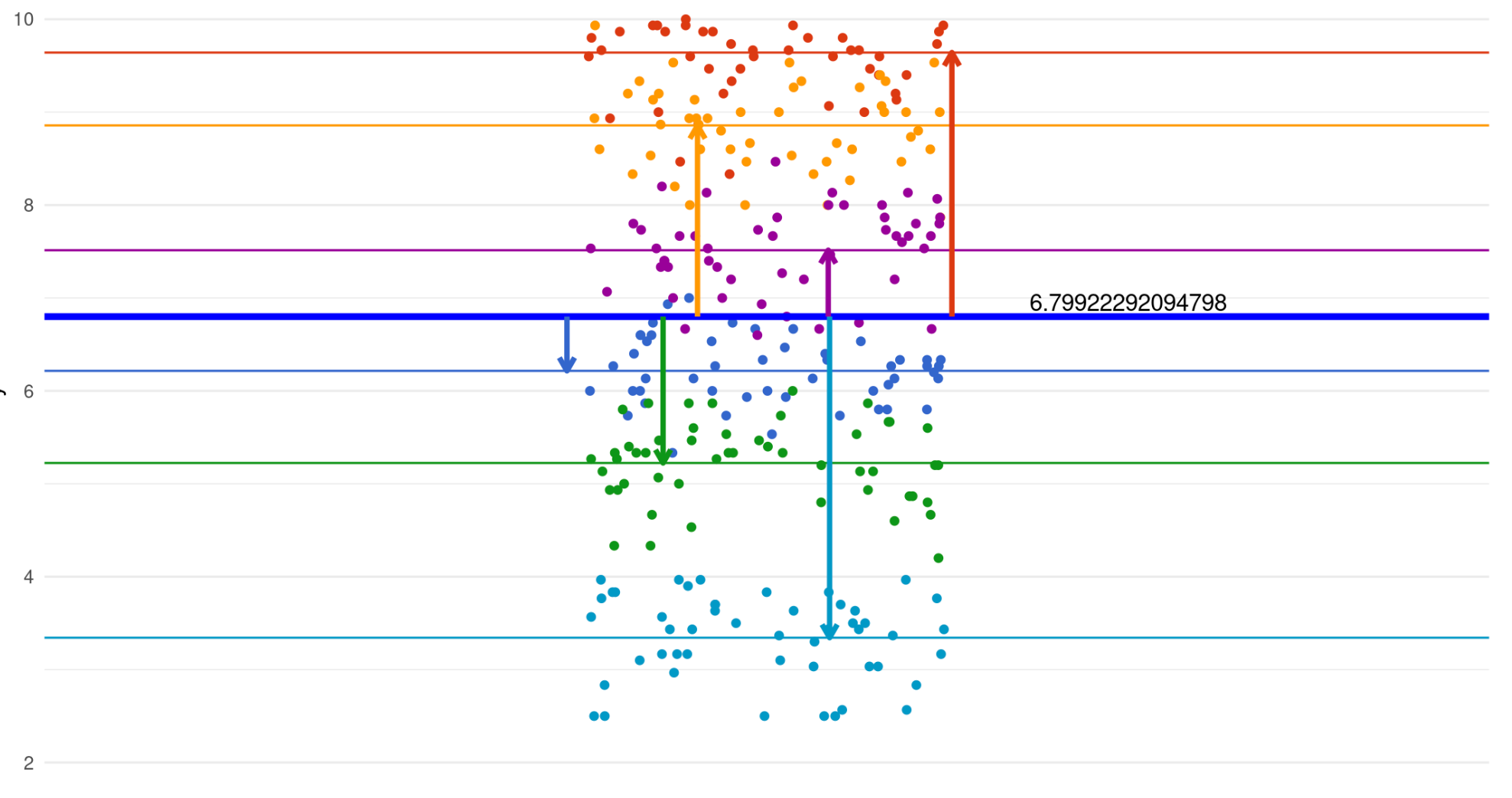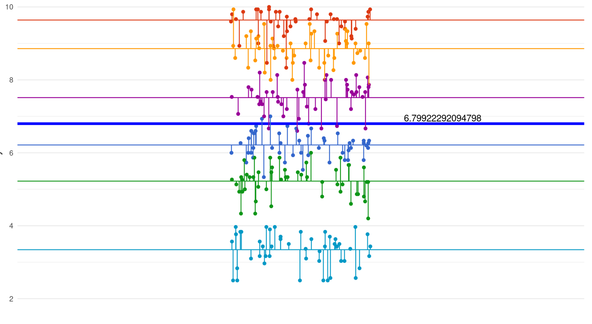 But this time we introduce a multilevel data structure, i.e. our data points are nested in six other groups.