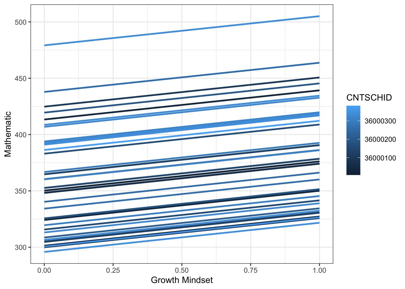 m2 <- m2 <- lmer(MATH ~ 1 + ESCS + (1 + ESCS | CNTSCHID), data = pisa)Viewing